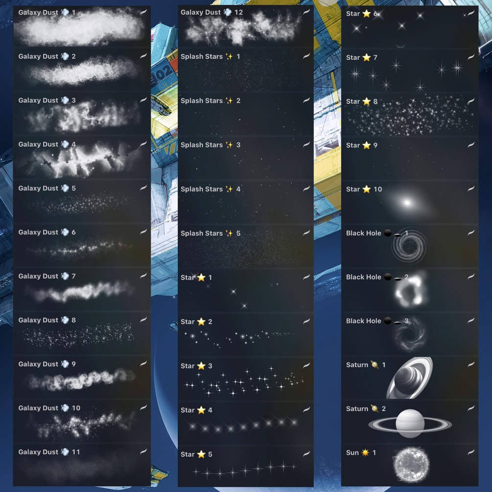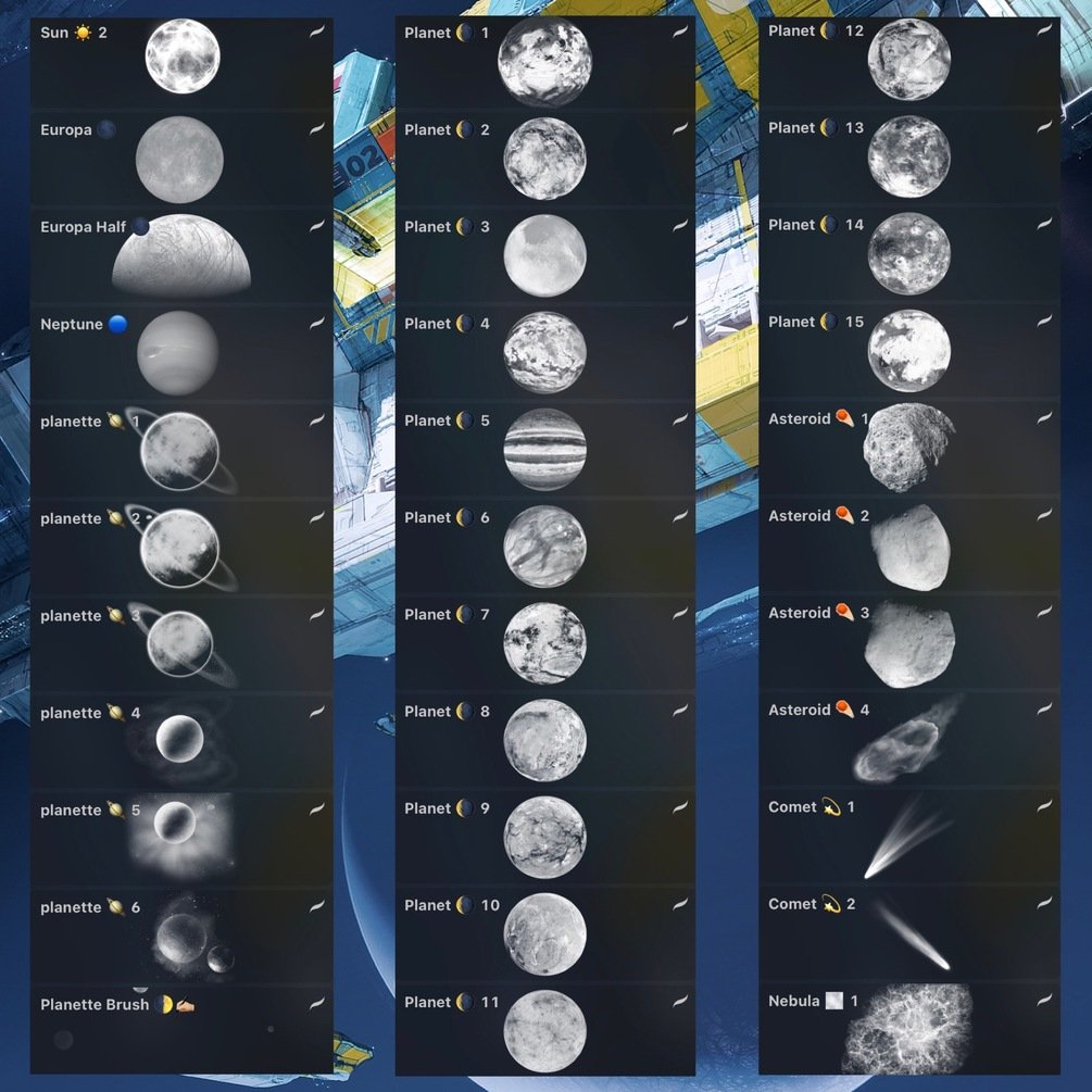 it is New Galactic Brush Set in which 160 Brushes! + 33 PNG